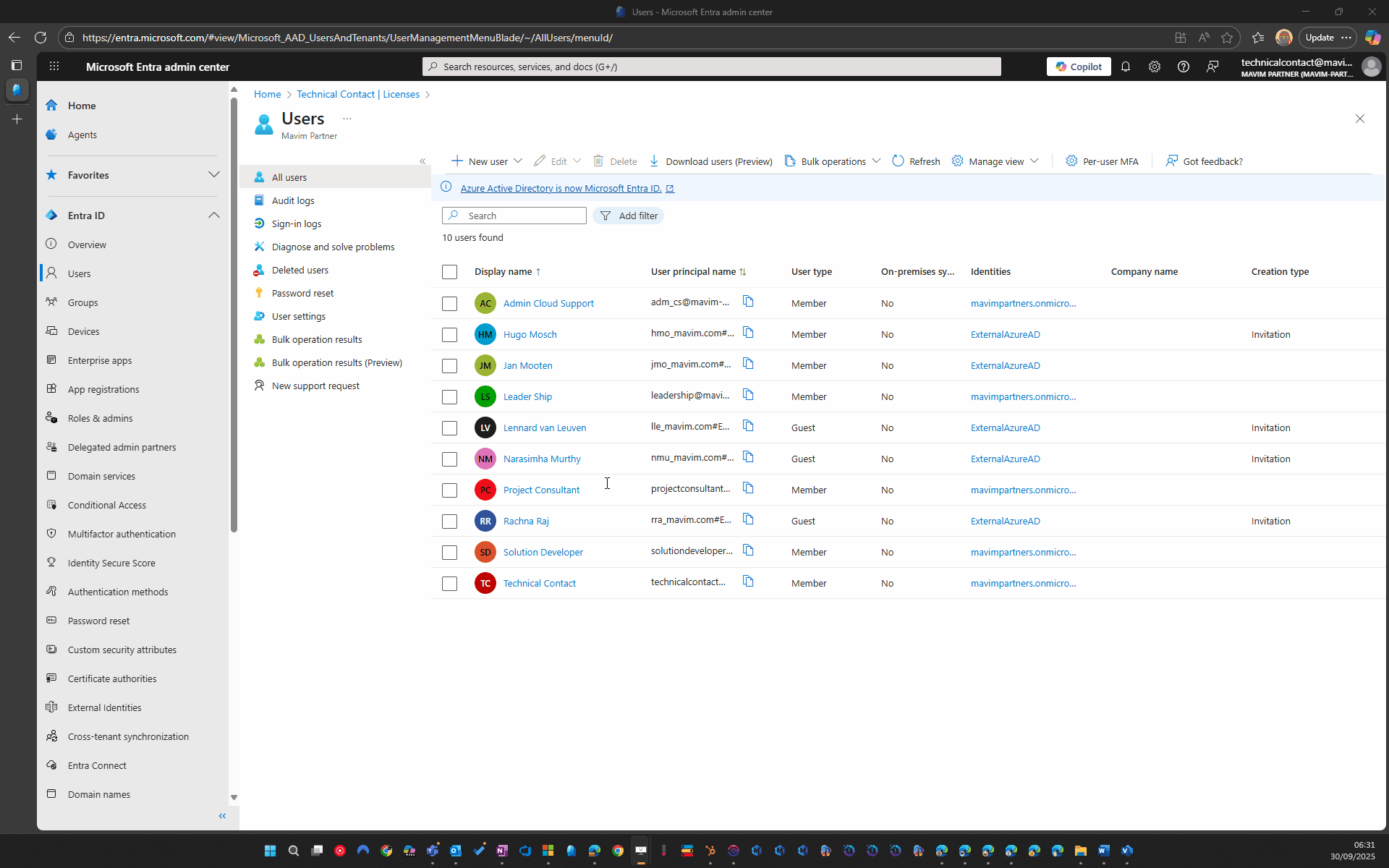 Once federation is complete. Simply add any Partner user who needs access to your organization's Microsoft Entra AD. Once added to Entra AD, they will be able to access your Mavim Portal.