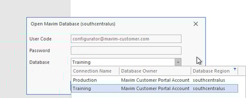 Your user account is tied to database access managed by your administrator in the Mavim Connect Center.