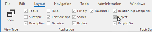 - Go to the Layout tab in the ribbon and enable "Objects"