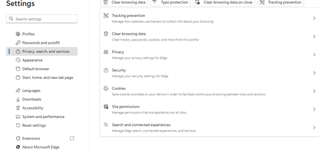 - Select Privacy, search, and services.