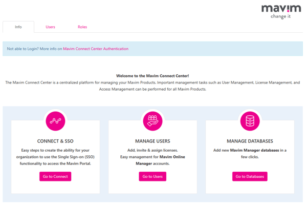 Mavim Connect Center (MCC) is the central hub for license administration for all Mavim products.