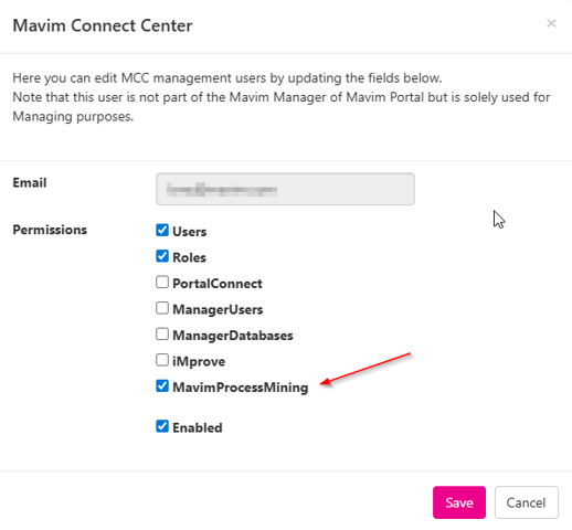 Step 2 – Assign the Mavim Process Mining role to your MCC account