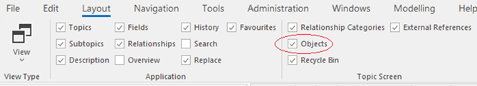- If the Objects menu is not visible, enable it via Layout → Objects.