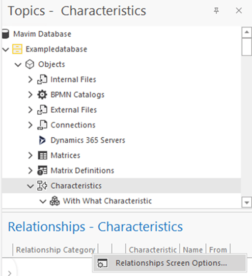 To verify whether a characteristic is still used in your Mavim database, follow these steps: