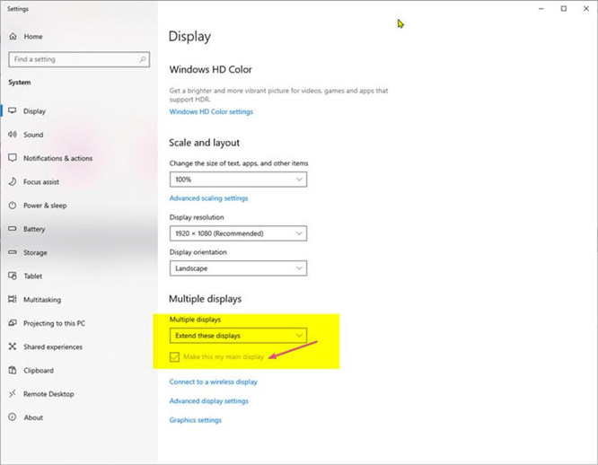 When multiple screens are connected, Mavim and Visio follow Windows’ primary display setting: