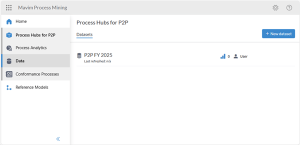 This article explains how to create and manage a dataset in Mavim Process Mining within a Process Hub.