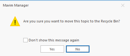 You can disable this confirmation by selecting the "Don't show this message again" checkbox. To re-enable the confirmation prompt later, go to the Mavim Manager Options screen.