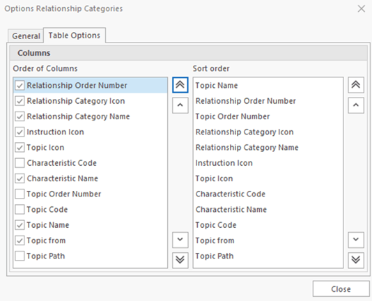 If you plan to actively sort relationships, it’s best to disable the Topic Order Number column.
