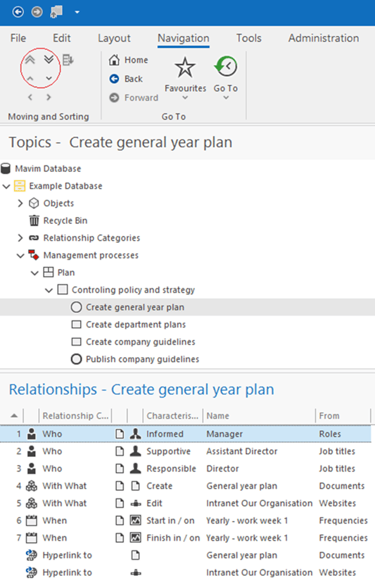 Use the Move and Sort buttons on the Navigate tab to rearrange the relationships.