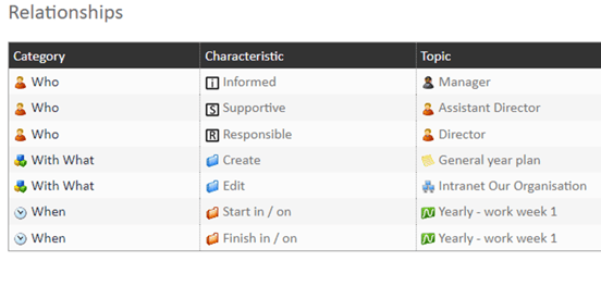 By default, relationships on a topic may not appear in the order you want on the Portal. To make them clearer, you can change the order of relationships in the relationship window. This allows you to control how they are displayed in the Portal publication.