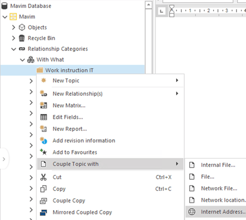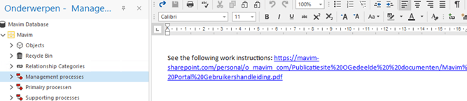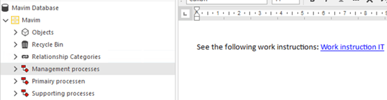 - On the topic where you want the link to appear, insert a hyperlink to the newly created topic (e.g., “Work Instruction IT”).
