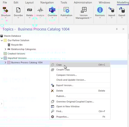 Right‑click the purple Business Process Catalog Export … topic and select Copy.