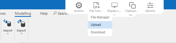- In the blue top header, open the action toolbar and select File Transfer → Upload.