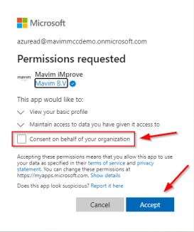 Consenting the Mavim app requires administrator privileges in Entra ID.