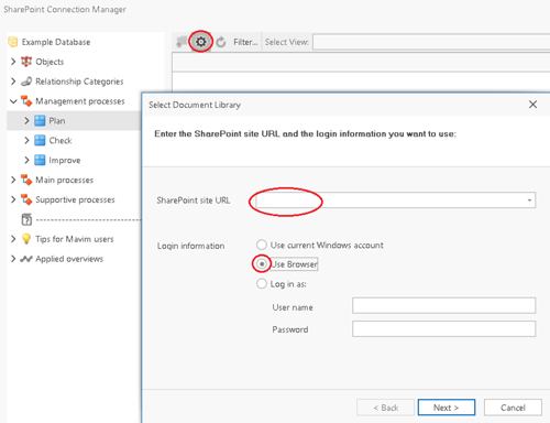 Choose Use browser to browse and link documents from a library on your SharePoint server.