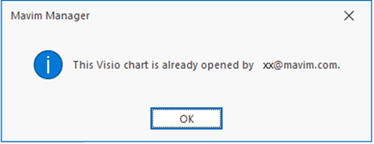 When opening a Visio chart in Mavim Manager, users may receive a message stating that the chart is already open. This is caused by a disconnected session, which occurs when Mavim Manager is not properly closed or the browser enters sleep mode. This article explains how to identify and resolve the issue.