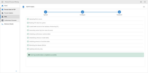 This article explains how to upload event log files to a Process Hub in Mavim Process Mining, configure mandatory columns, and transform data for analysis.