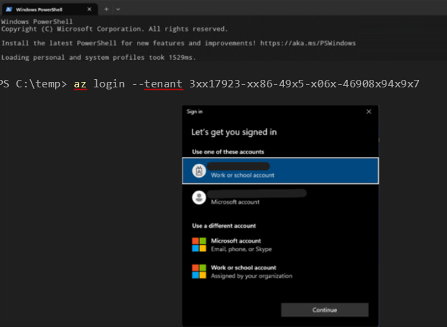 Open the Windows Terminal (preferably PowerShell prompt) and login to the Azure tenant by using the command: