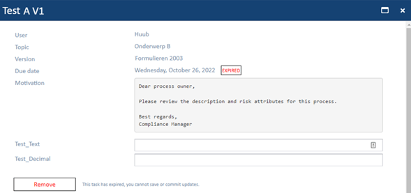 If a task in the Mavim Portal shows the status "EXPIRED", it means the task is no longer valid and the process cannot continue.