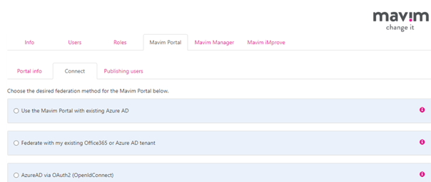 Mavim can perform an IDP switch on the Portal. This links users new accounts to their existing data after federation.
