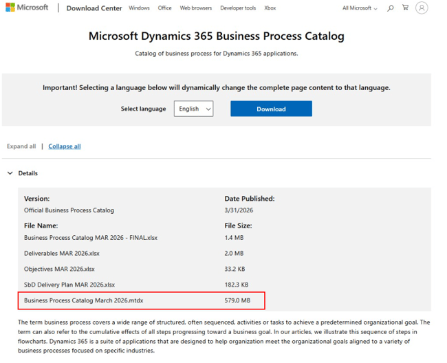 Microsoft publiceert de Business Process Catalog vanaf maart 2026 in twee formaten: