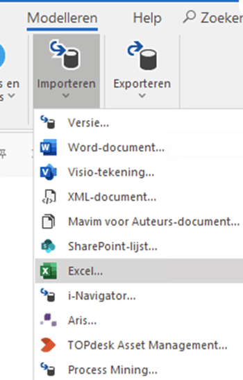 - Ga vervolgens naar Modelleren > Importeren > Excel.