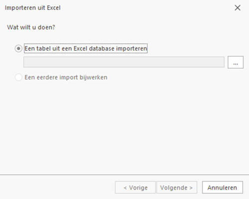 - Klik op de Browse‑knop (…) en selecteer je Excel‑bestand.