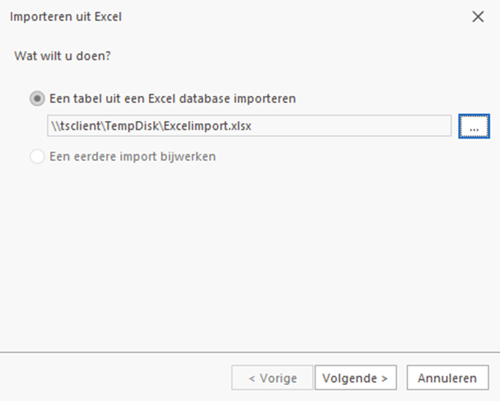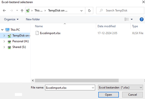Stap 2: Excel‑bestand kiezen in Mavim Manager