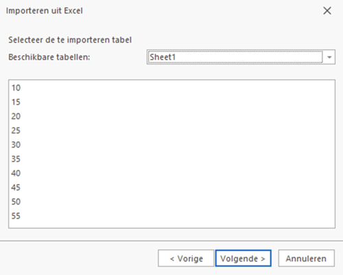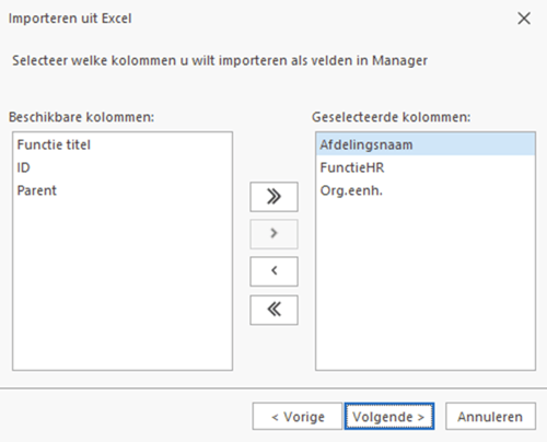 - Selecteer alleen de kolommen die je als velden wilt importeren.