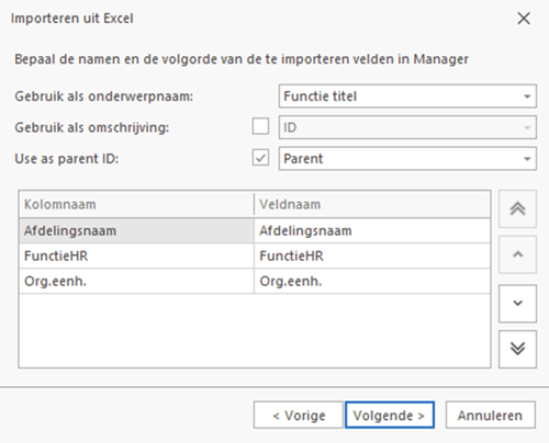 Hiermee wordt de hiërarchie opgebouwd op basis van de verwijzingen in het Excel bestand.