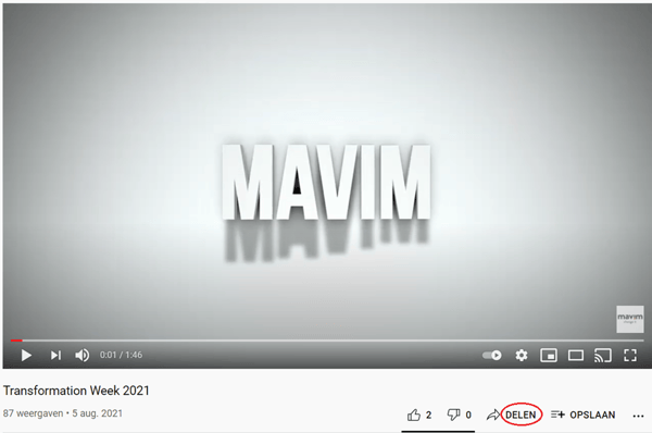 Klik onder de video op Delen > Insluiten (Share > Embed).