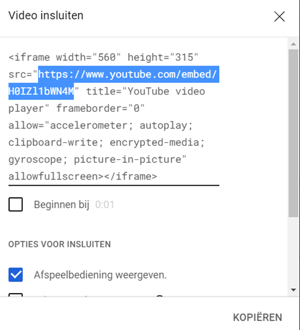 Kopieer alleen het gedeelte tussen de aanhalingstekens achter src=” “ bijvoorbeeld: