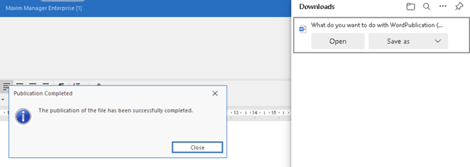Uitleggen hoe je een Word-publicatie die in Mavim Manager is aangemaakt, kunt downloaden en beschikbaar maken in je lokale omgeving.