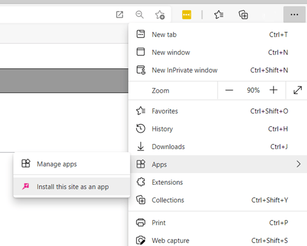 Kies Apps > Deze site installeren als app (Install this site as an app).