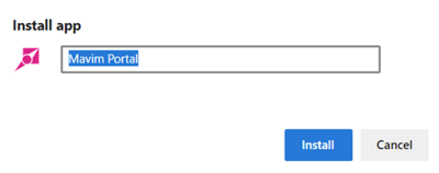 Geef de app een naam, bijvoorbeeld Mavim Portal, en klik op Installeren.