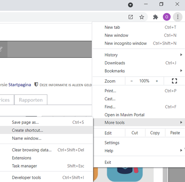 Hoe open ik de Mavim Portal direct als een app op volledig scherm?