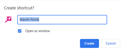 Wanneer u voortaan op dit icoon klikt, wordt de Mavim Portal direct als app geopend in volledig scherm.