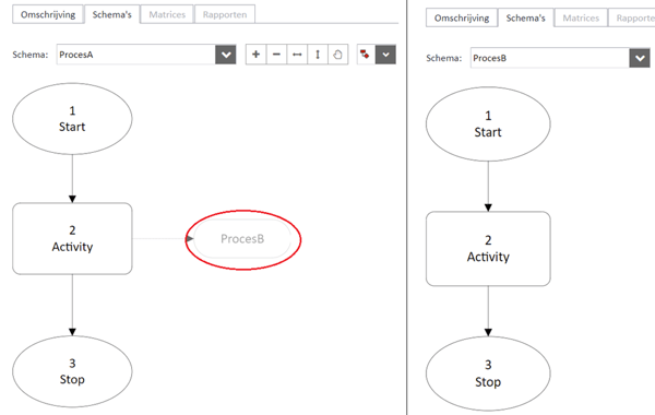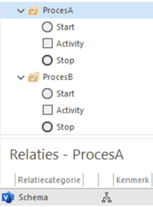 - Stel dat Proces A en Proces B beide een processchema hebben.