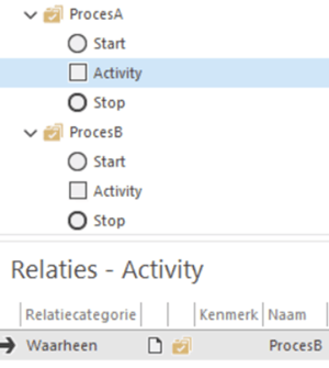 - Leg dan vanaf de processtap (bijvoorbeeld Activity) een Waarheen-relatie naar Proces B.