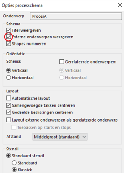 - Wil je dat vanuit een processtap in Proces A direct het schema van Proces B opent?