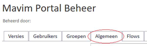 https://<yourportal>.mavimcloud.com/portal/admin - Open de tab Algemeen