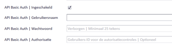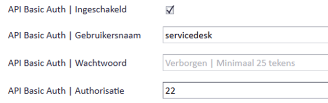 - Vul het ID in achter API Basic Auth | Authorisatie, dus in dit voorbeeld 22.
