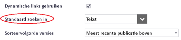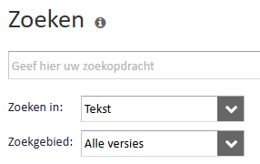 - Start de Portal opnieuw. 'Zoeken in' staat nu op Tekst, het zoekgebied staat standaard op Alle versies en kan niet vooraf ingesteld worden.