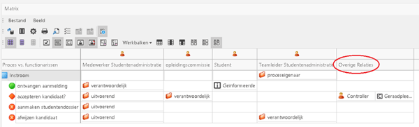 - Relaties die niet in de matrixdefinitie passen, maar wel relevant kunnen zijn, verschijnen in de kolom Overige Relaties.