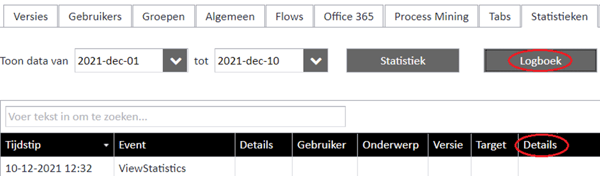 - In de kolom UserName zie je welke gebruiker de actie heeft uitgevoerd.