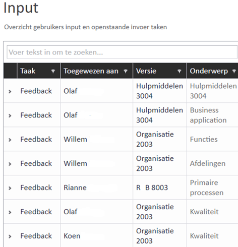 Feedback uit eerdere versies