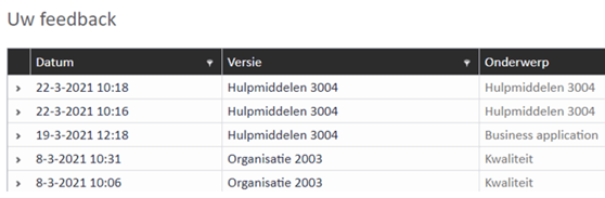 Via de Dashboard-knop is alle feedback zichtbaar die de gebruiker zelf heeft ingevoerd, ook op versies die Offline staan.