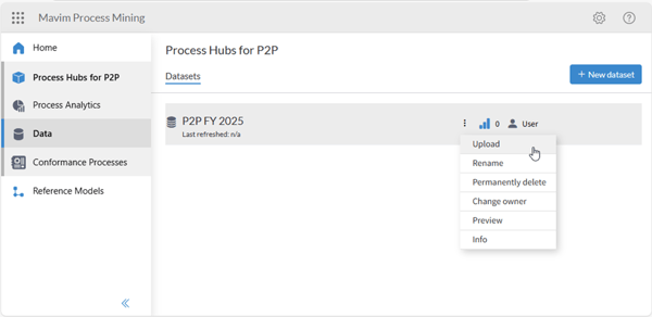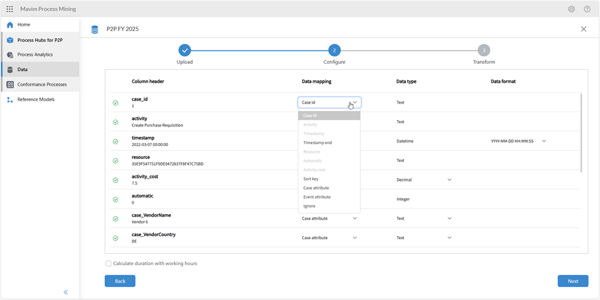 Dit artikel legt uit hoe je een event log uploadt en transformeert zodat je procesanalyses kunt uitvoeren in Mavim Process Mining.