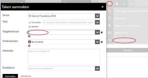 Test dit door handmatig een taak aan te maken op een onderwerp. Werkt dit goed, dan kan dezelfde taak ook via een flow worden aangeboden.