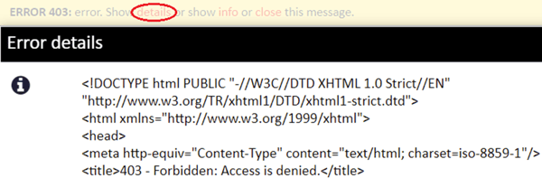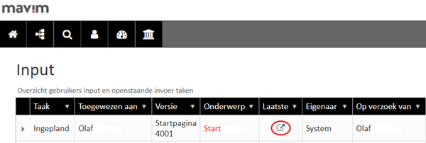 Als die versie offline staat (bijvoorbeeld door publicatie van een nieuwe versie), verschijnt een Error 403 bij het openen van de taak via de link in het inputscherm.